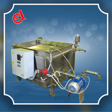 Плавитель жира - двустенный сосуд, установленный вертикально на опорах, из нержавеющей стали, укомплектован электрическими ТЭНами и циркуляционным насосом. Жиротопка (агрегат быстрого растопления жиров) имеет пульт управления, включающий пускатели ТЭНов и термодатчик для регулирования температурных режимов в плавителе |