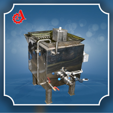 Жиротопка с электрическим нагревом устанавливается на опоры, регулируемые по высоте, и имеет плоское наклонное дно. В верхней части жиротопки установлена обогреваемая трубная решетка с защитным кожухом. Внутренний слой прямоугольного котла жиротопки называется рубашкой, и заполняется теплоносителем, в качестве которого применяется пищевой глицерин или вода. Перемещение теплоносителя по контуру нагрева осуществляется циркуляционным насосом. Нагрев теплоносителя жиротопки происходит при помощи теплоэлектронагревателей (ТЭНов). |