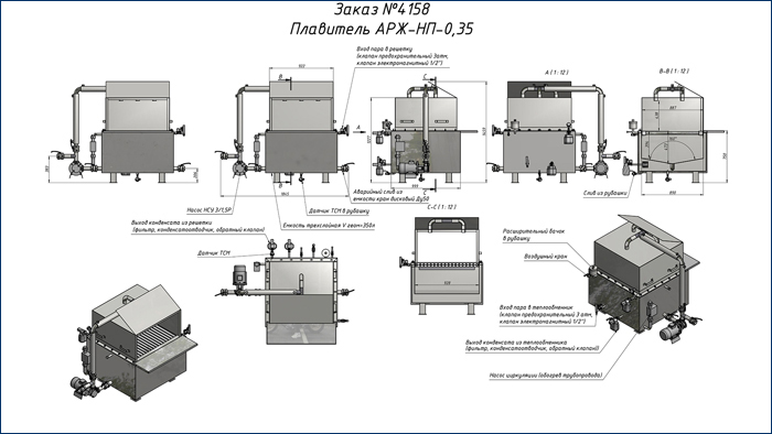 Серийно выпускаем жиротопки : обогрев паром+электрообогрев, открытого типа, с мешалкой, с торцевой загрузкой и поливом блоков, с двухъярусной решеткой, с перемешивающим устройством, плавители, маслоплавители, томилки-жиротопки, маслотопки для производства маргаринов, комбинированных масел, мороженого, сгущенного молока, начинок, кремов, мазей, смазок и др.