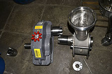 Насос самовсасывающий пластинчатый НП150 40кВт с увеличенной в длину и в диаметре рабочей частью из пищевой нержавеющей стали с сальниковым уплотнением, для перекачки густых, карамелизующихся, вязких сред до 150кубм/час. Высокооборотистые 750-1000 об/мин давление от 3 до 10 бар t=-40 до +125грС или Среднеоборотистые до 600 об/мин давление от 3 до 6 бар t=-40 до +125грС скорость вращения ротора до 600 об.мин.,рабочая температура от +20 до+70С,давление -6,0Бар,агрегатирование эл.дв. 18кВт/1000 об.мин.,редуктор 1ЦУ200-3-32ЦЦ,паровая рубашка, датчик температуры, термореле. |