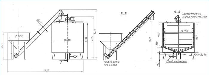 Во избежание образования застойной зоны в нижней части сироповарки находится «грибковая пробка». Загрузка готового продукта в сироповарку происходит через откидывающуюся крышку.
