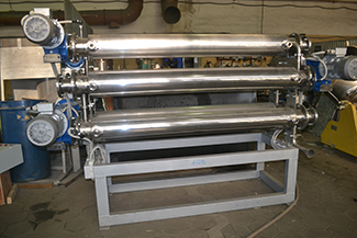 Цилиндр охладителя/пастеризатора расположен на опорах. Трубчатый теплообменник (охладитель) представляет собой одноходовой трубчатый теплообменник. Внутри цилиндрарасположены теплообменные трубки, концы которых герметично развальцованы втрубных решетках. Производительность может меняться в зависимости отначальной и конечной температуры продукта.